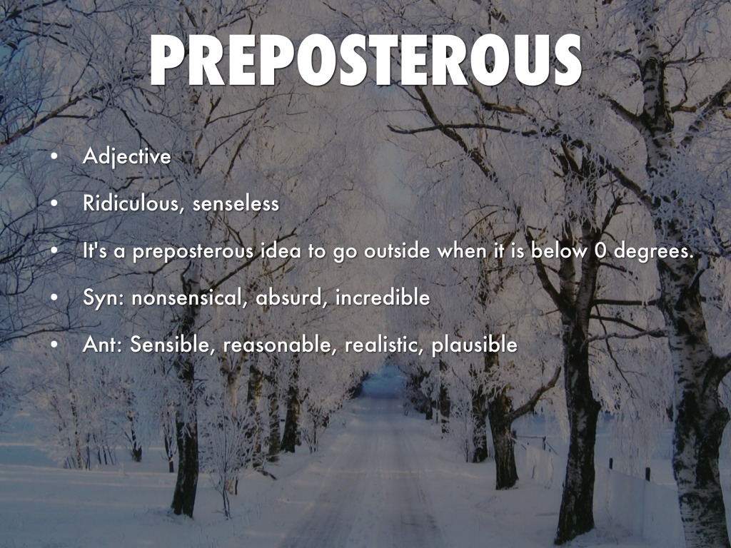 It's a preposterous idea to go outside when it is below 0 degrees.