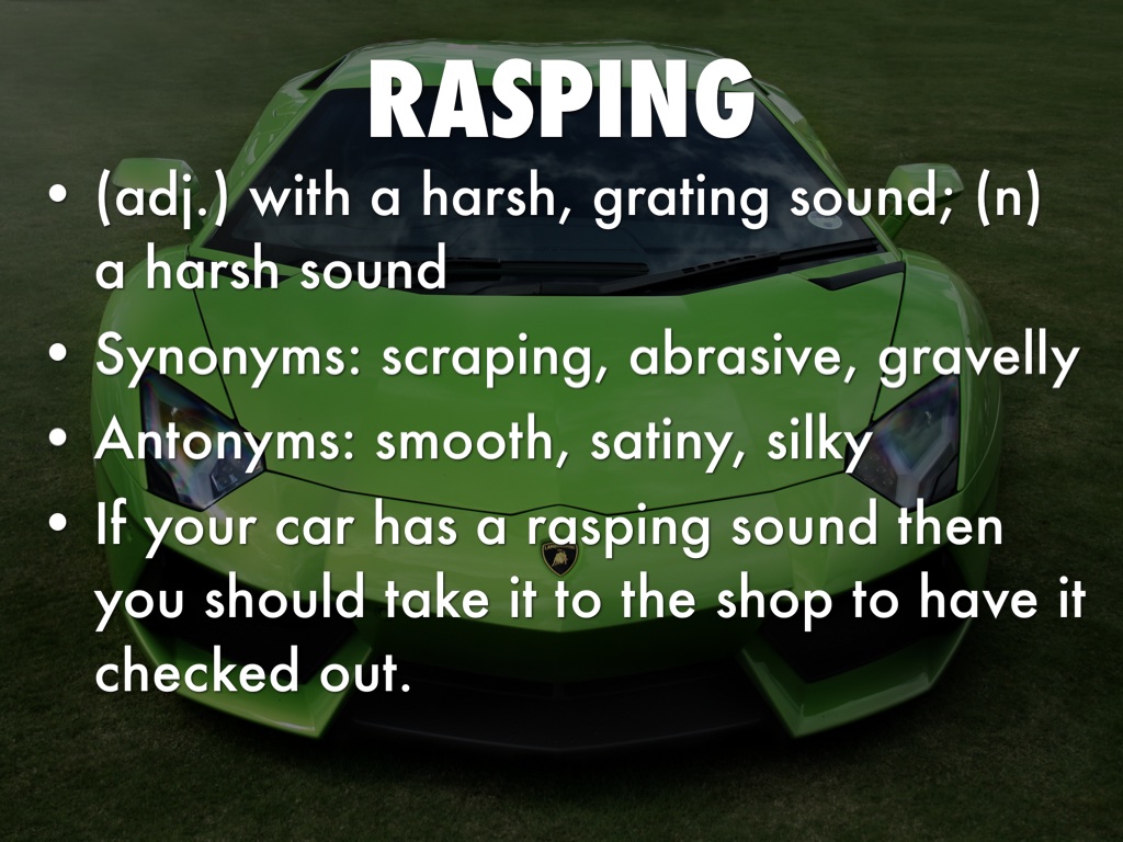 If your car has a rasping sound then you should take it to the shop to have it checked out.