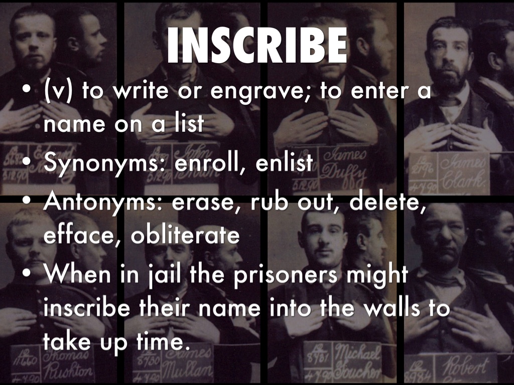 When in jail the prisoners might inscribe their name into the walls to take up time.