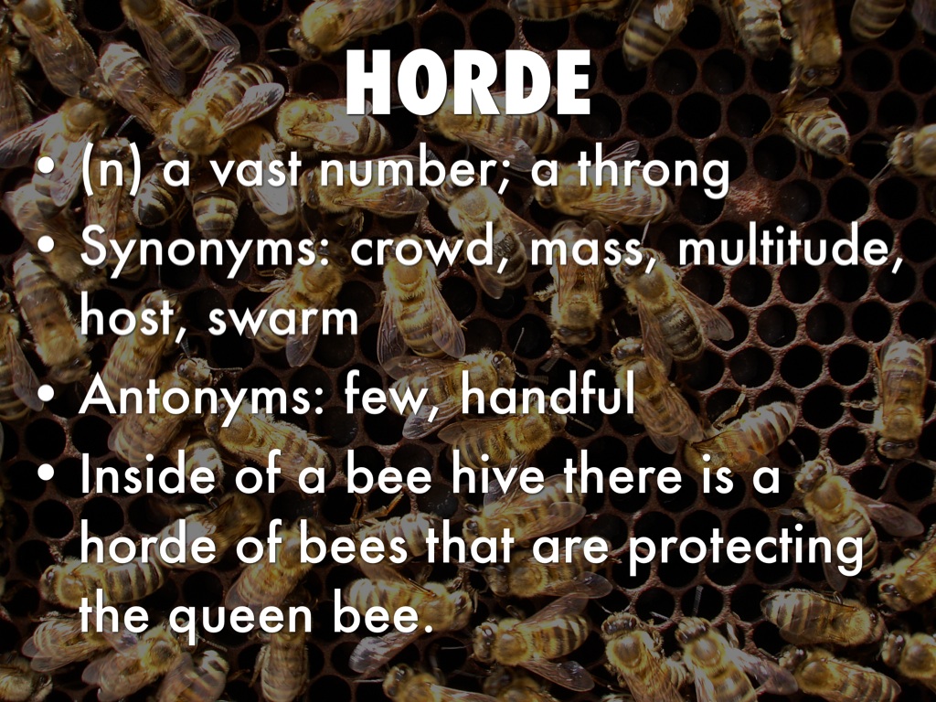 Inside of a bee hive there is a horde of bees that are protecting the queen bee.