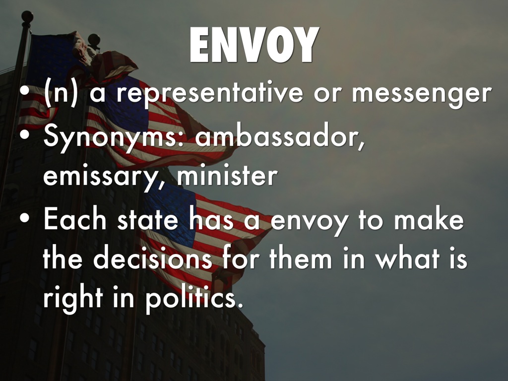Each state has a envoy to make the decisions for them in what is right in politics.