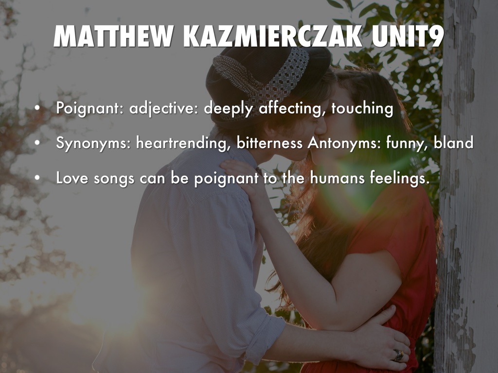Synonyms: heartrending, bitterness Antonyms: funny, bland