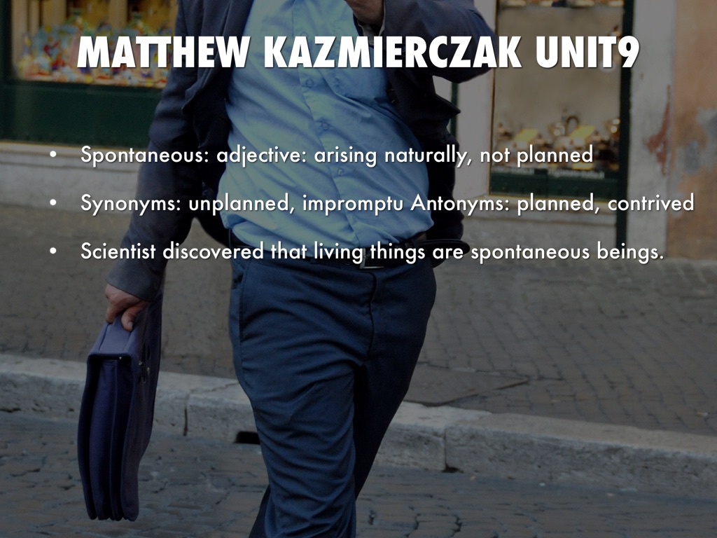 Synonyms: unplanned, impromptu Antonyms: planned, contrived