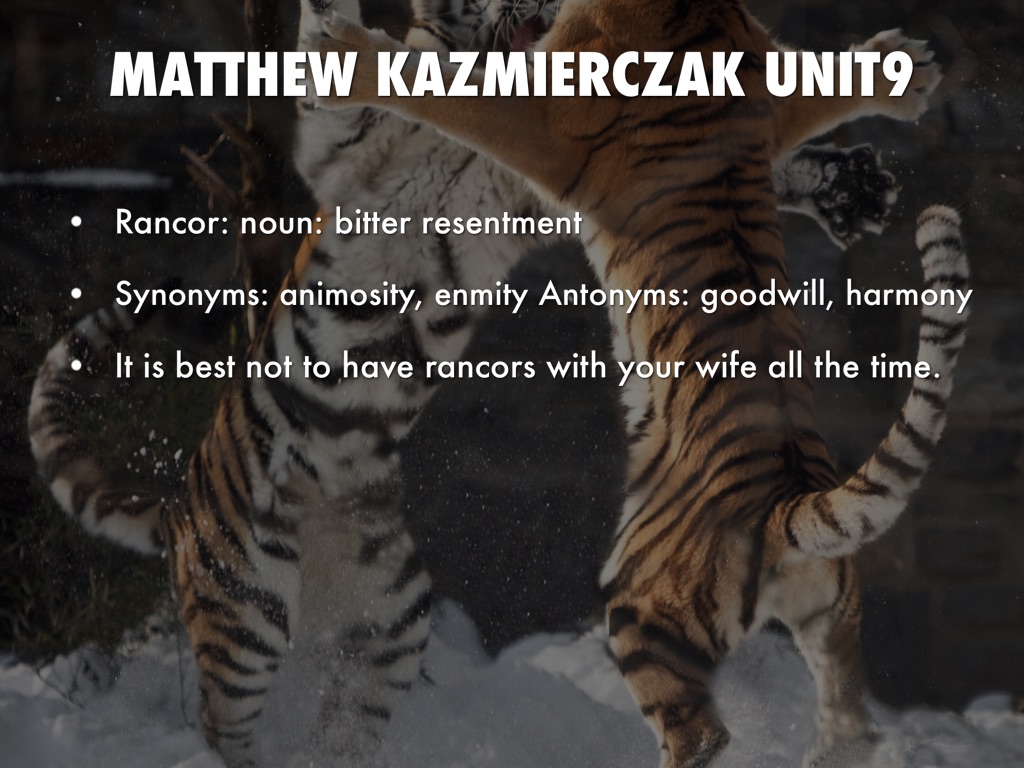 Synonyms: animosity, enmity Antonyms: goodwill, harmony