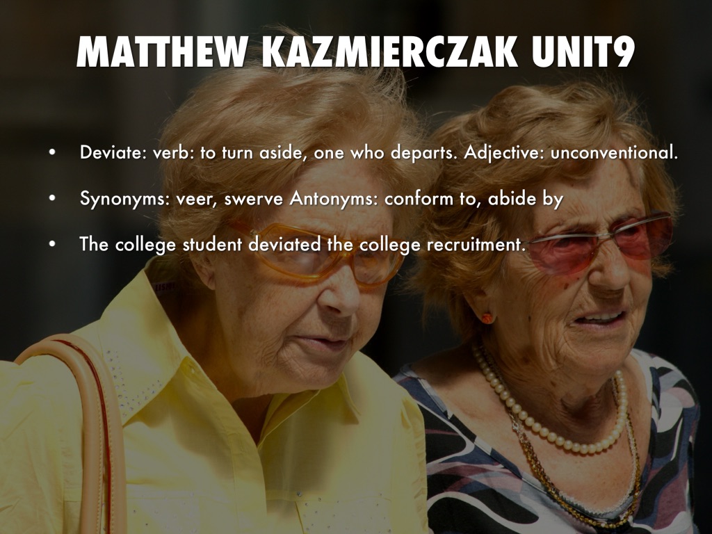 Deviate: verb: to turn aside, one who departs. Adjective: unconventional.