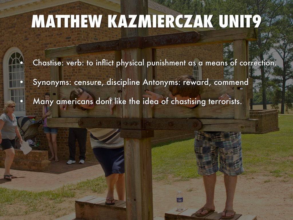 Chastise: verb: to inflict physical punishment as a means of correction.