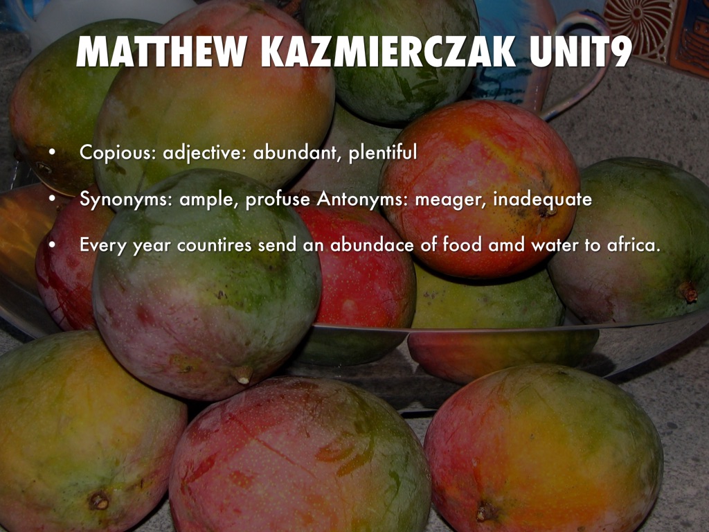 Synonyms: ample, profuse Antonyms: meager, inadequate