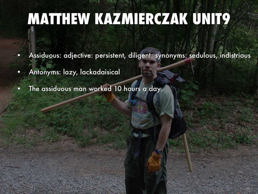 Assiduous: adjective: persistent, diligent: synonyms: sedulous, indistrious