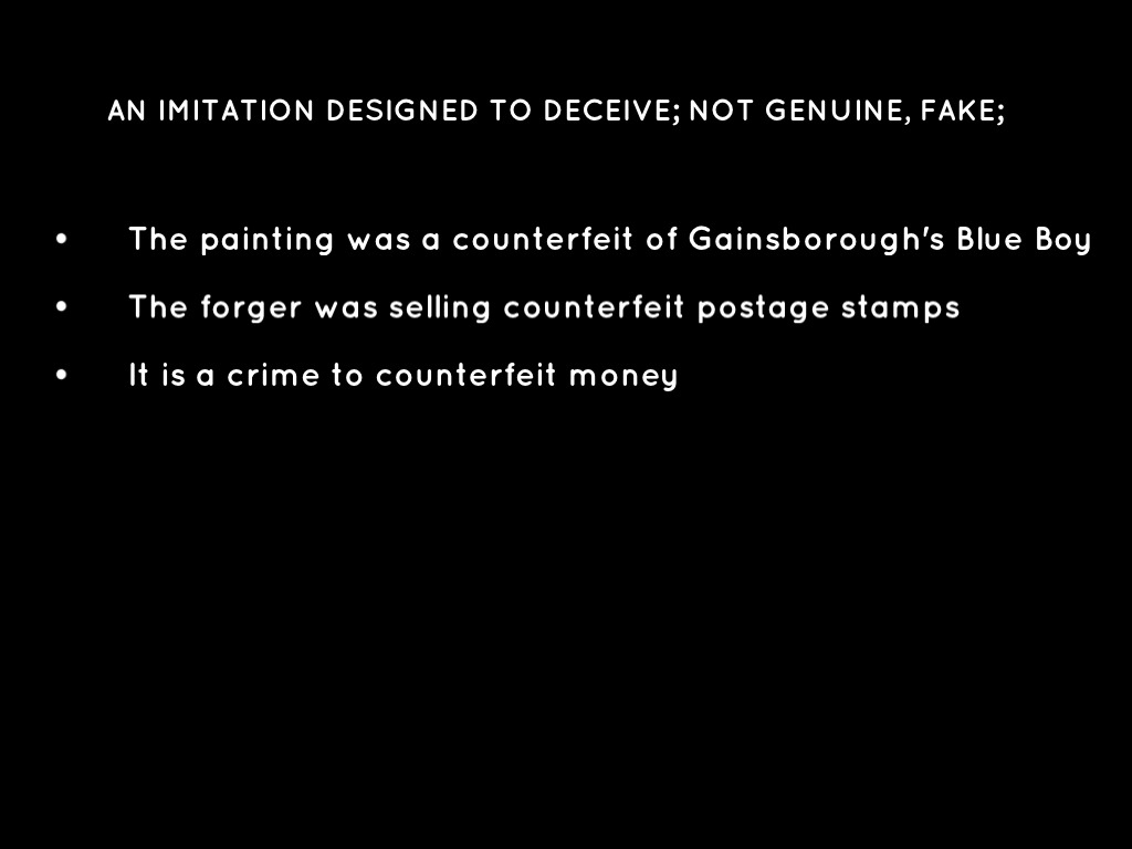 AN IMITATION DESIGNED TO DECEIVE; NOT GENUINE, FAKE;
