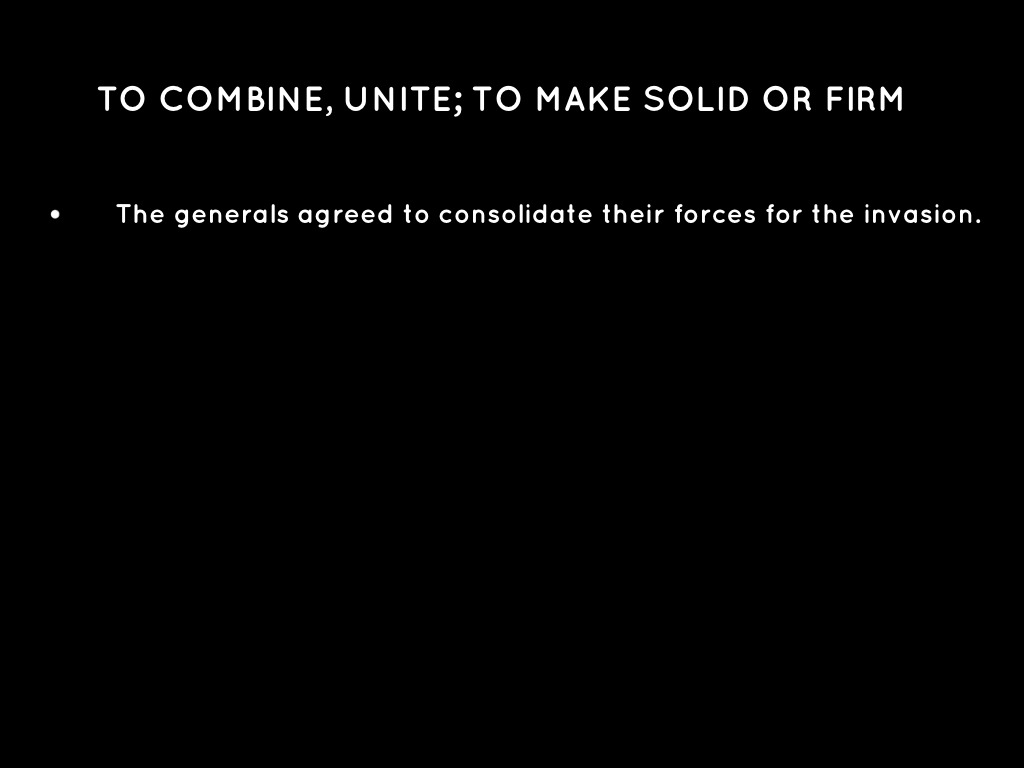 TO COMBINE, UNITE; TO MAKE SOLID OR FIRM