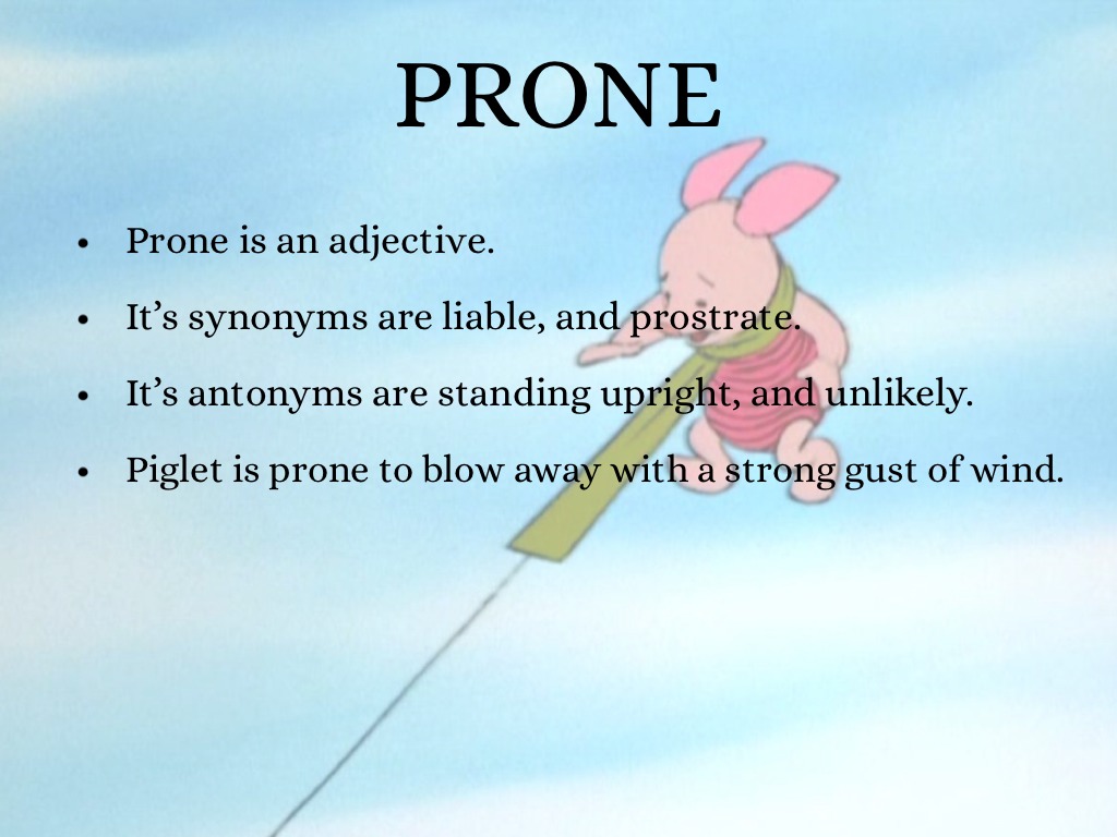It’s synonyms are liable, and prostrate.