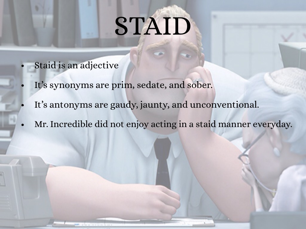Staid is an adjective