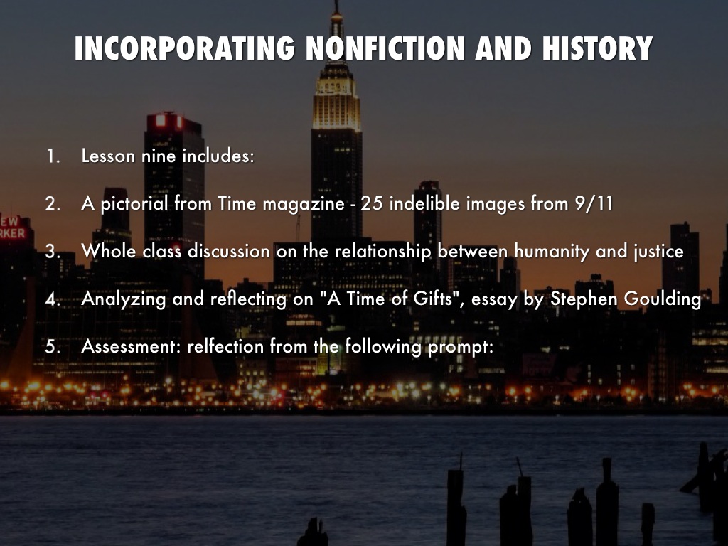 - Analyzing and reflecting on "A Time of Gifts", essay by Stephen Goulding