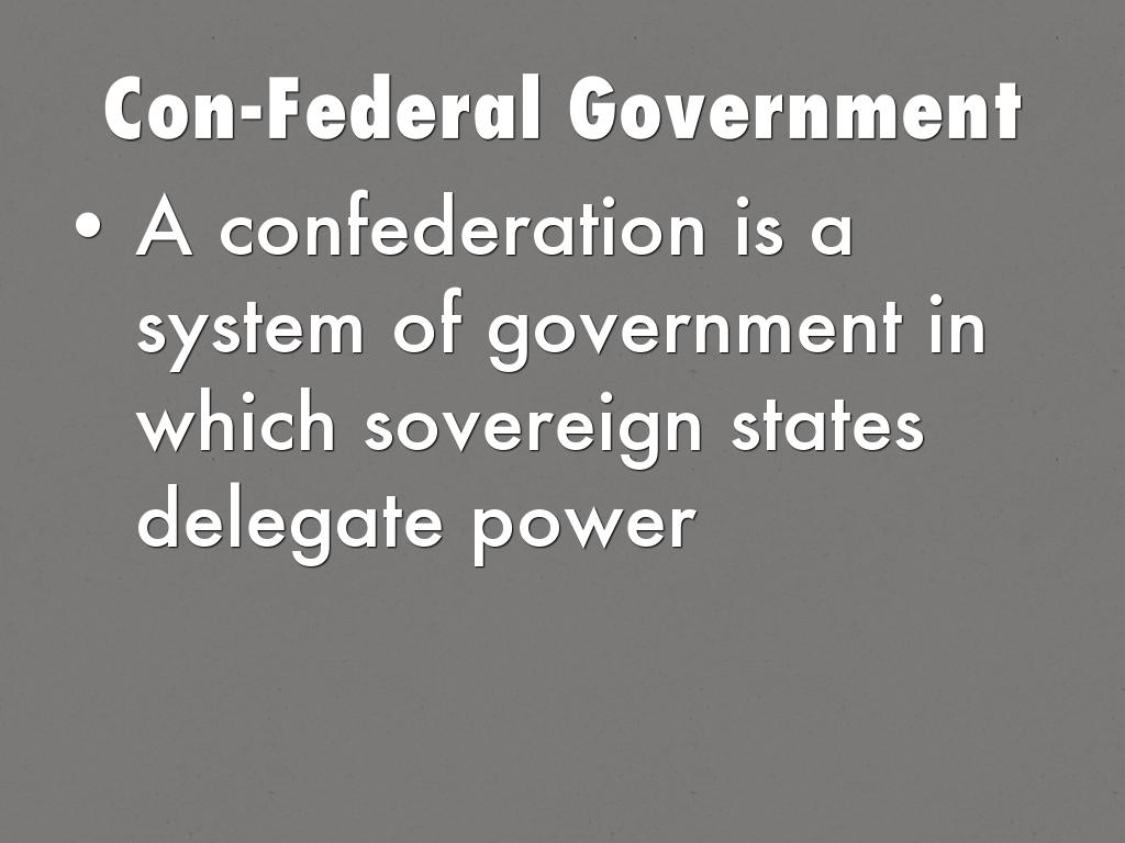 A confederation is a system of government in which sovereign states delegate power