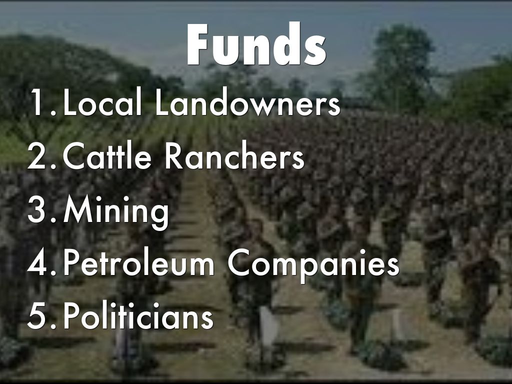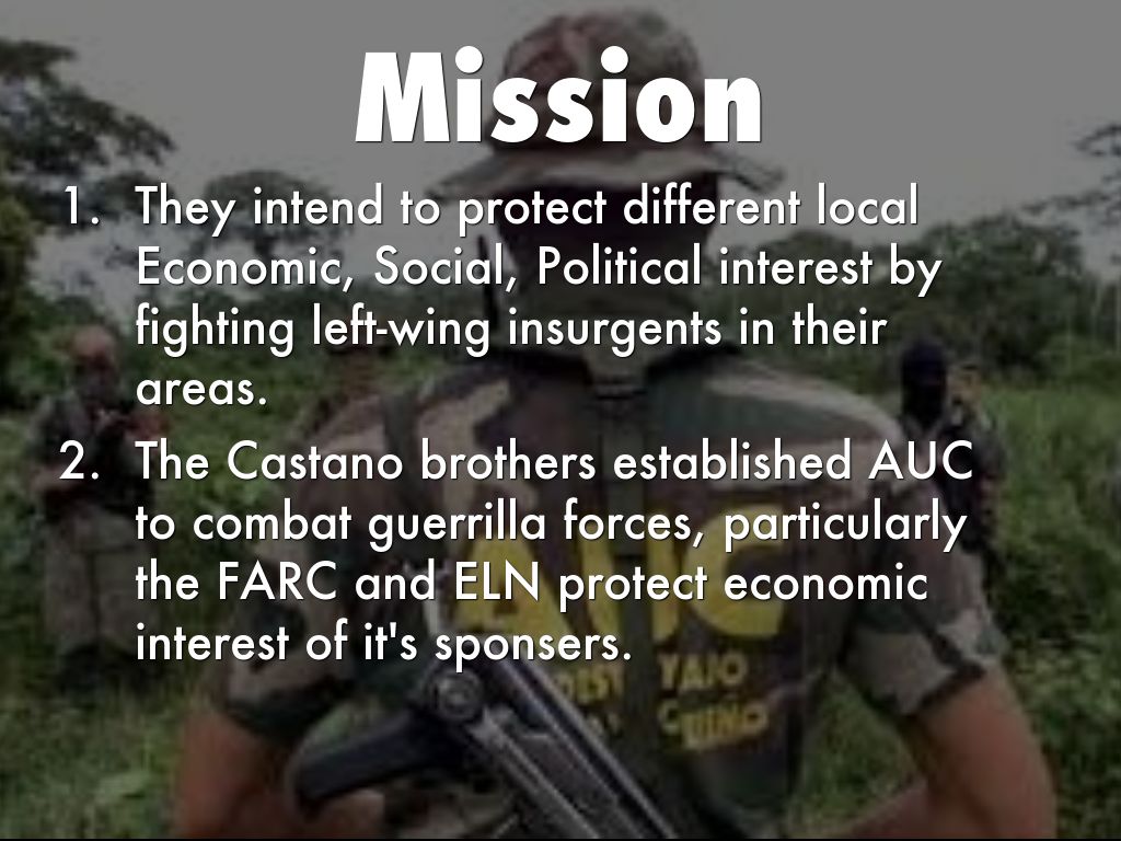 The Castano brothers established AUC to combat guerrilla forces, particularly the FARC and ELN to protect economic interest of it's sponsers.