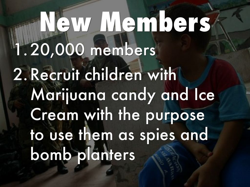 Recruit children with Marijuana candy and Ice Cream with the purpose to use them as spies and bomb planters