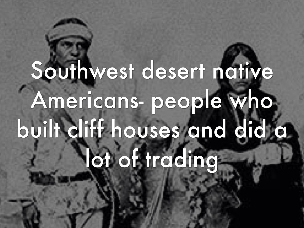 Southwest desert native Americans- people who built cliff houses and did a lot of trading