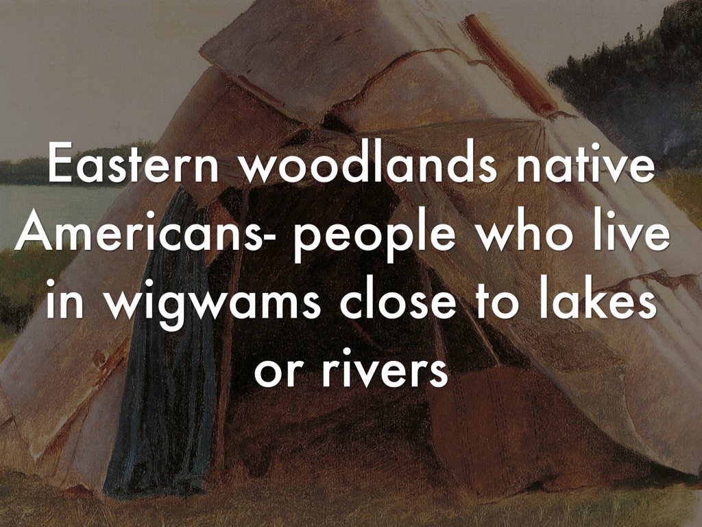 Eastern woodlands native Americans- people who live in wigwams close to lakes or rivers