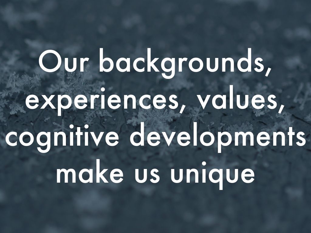 Our backgrounds, experiences, values, cognitive developments make us unique
