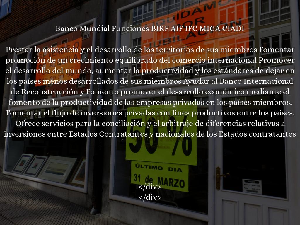 Banco Mundial Funciones BIRF AIF IFC MIGA CIADI