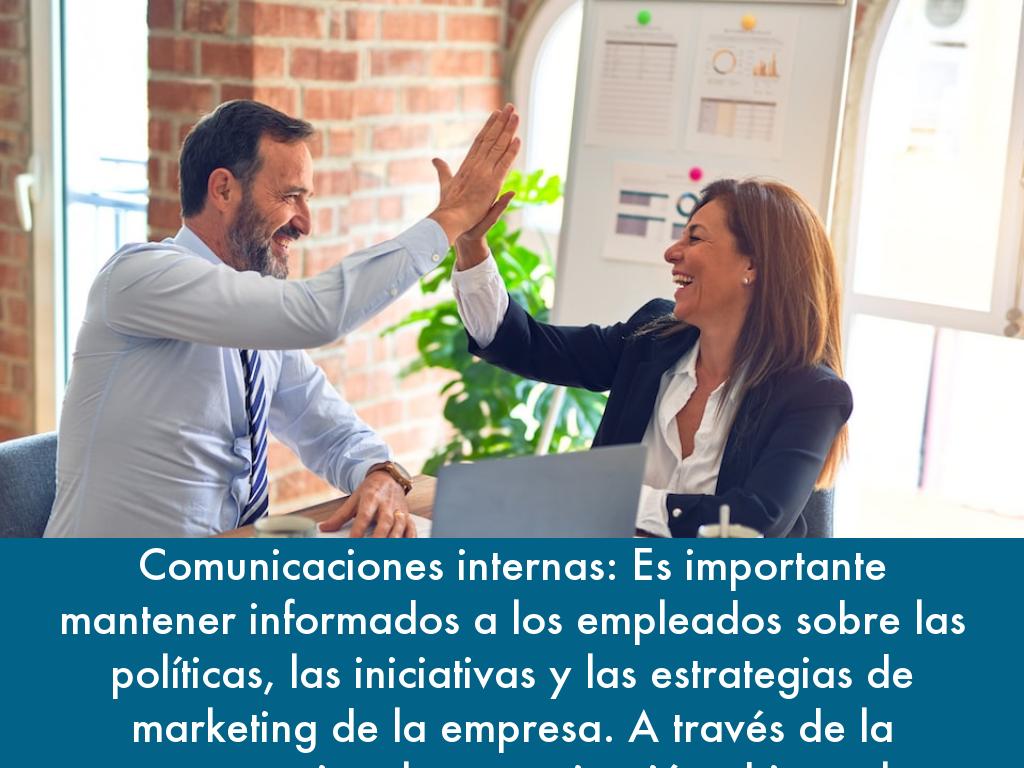 Comunicaciones internas: Es importante mantener informados a los empleados sobre las políticas, las iniciativas y las estrategias de marketing de la empresa. A través de la transparencia y la comunicación abierta, las organizaciones inspiran confianza y respeto entre sus empleados