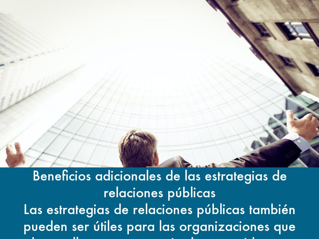 Beneficios adicionales de las estrategias de relaciones públicas Las estrategias de relaciones públicas también pueden ser útiles para las organizaciones que desarrollan una estrategia de contenido y un plan de optimización en buscadores (SEO).