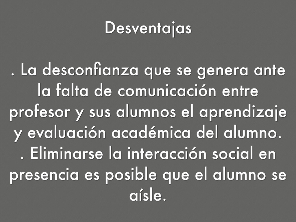 . Eliminarse la interacción social en presencia es posible que el alumno se aísle.