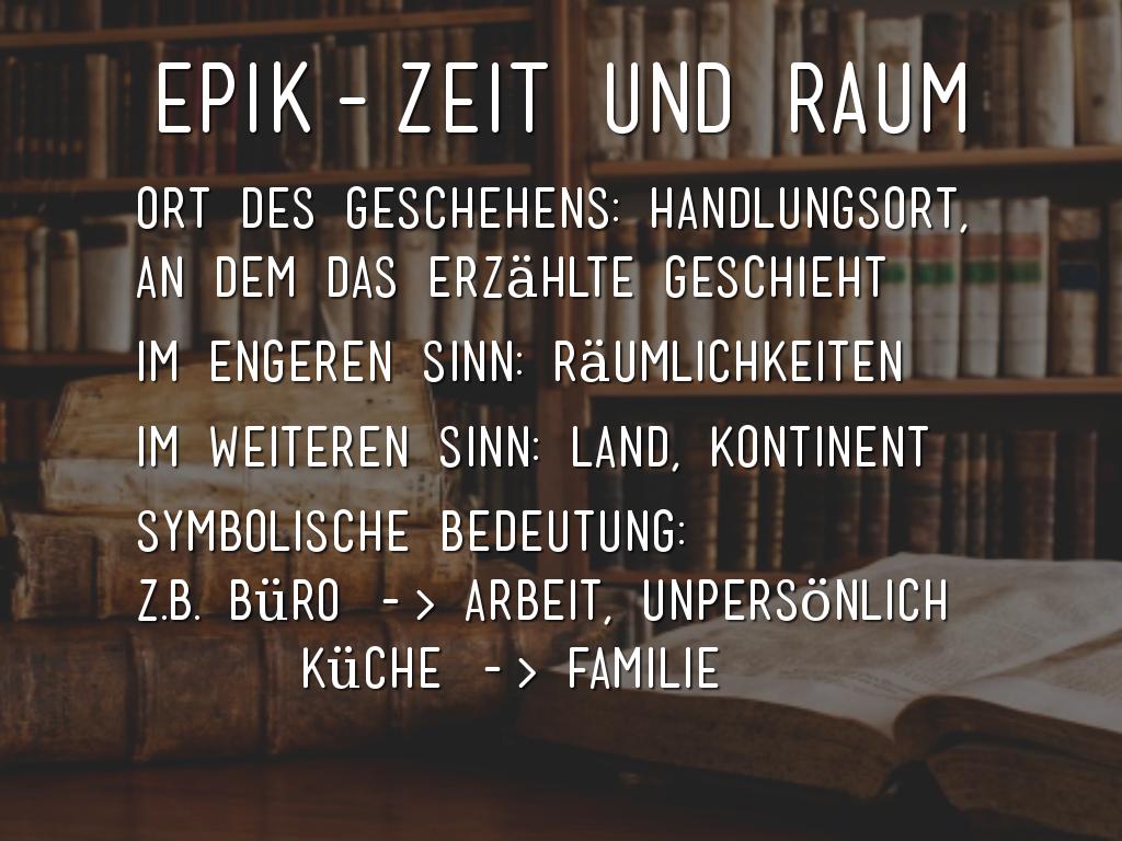 - Ort des Geschehens: Handlungsort, an dem das Erzählte geschieht