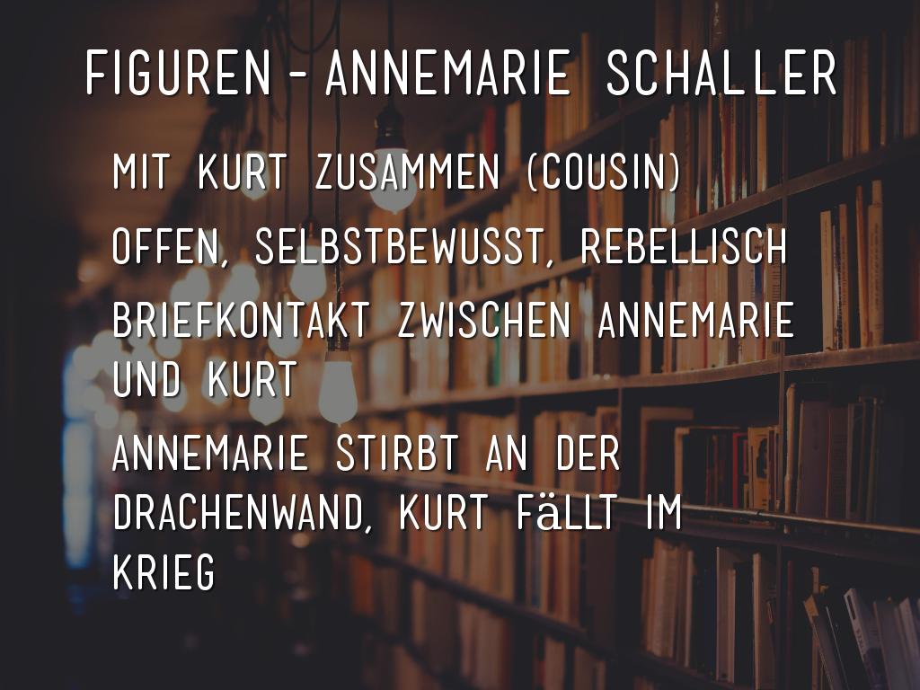 - Annemarie stirbt an der Drachenwand, Kurt fällt im Krieg