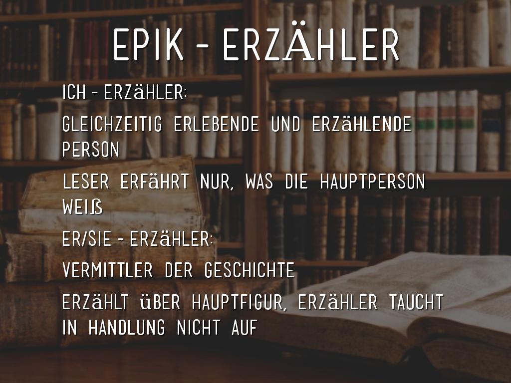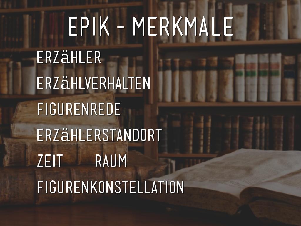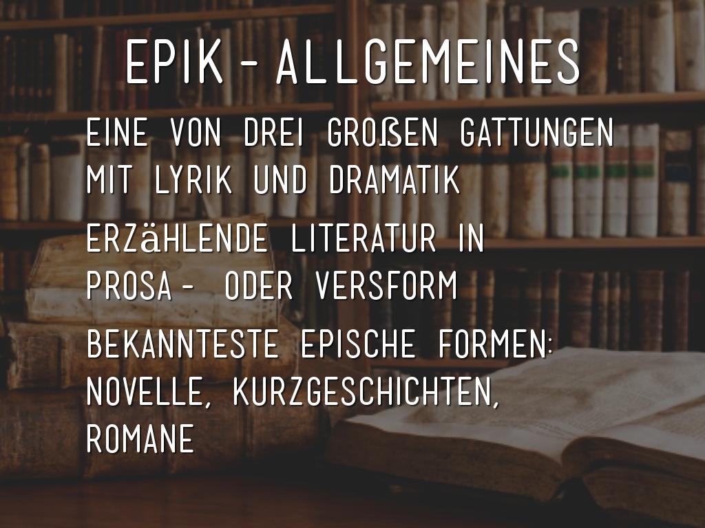 - Bekannteste epische Formen: Novelle, Kurzgeschichten, Romane