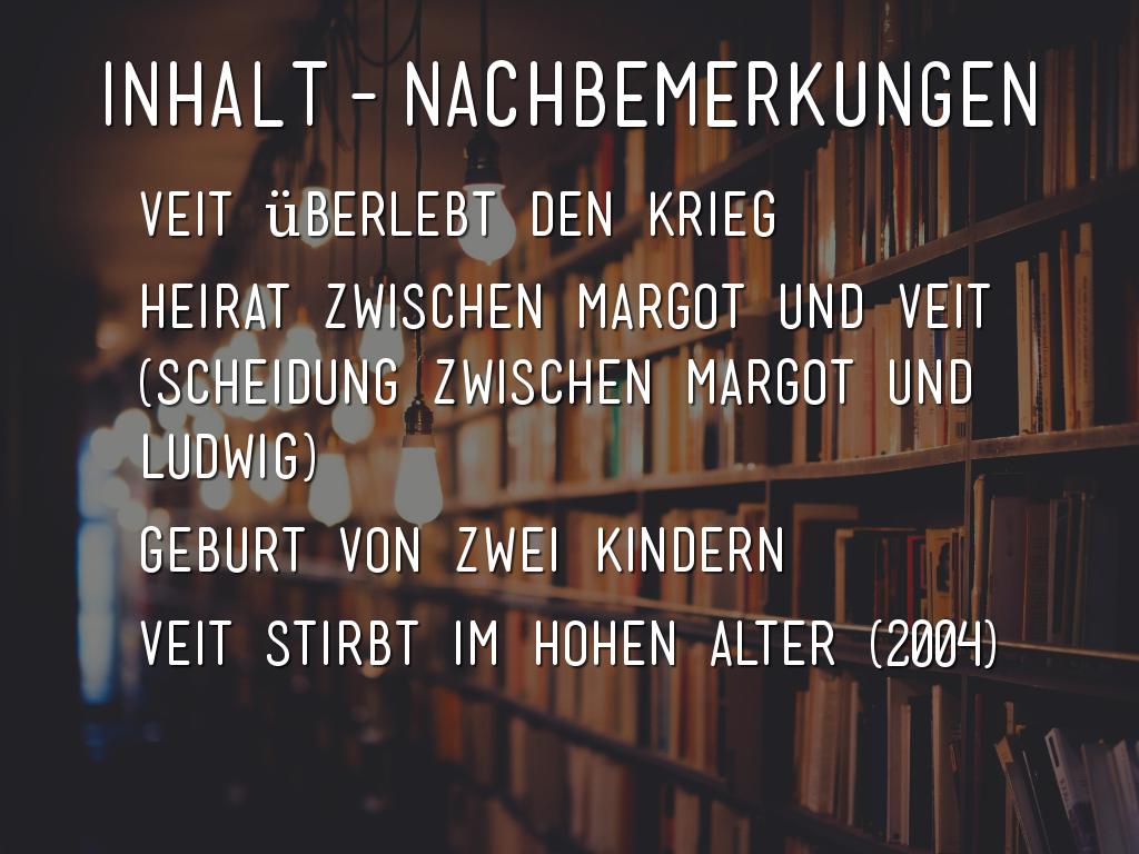 - Heirat zwischen Margot und Veit (Scheidung zwischen Margot und Ludwig)