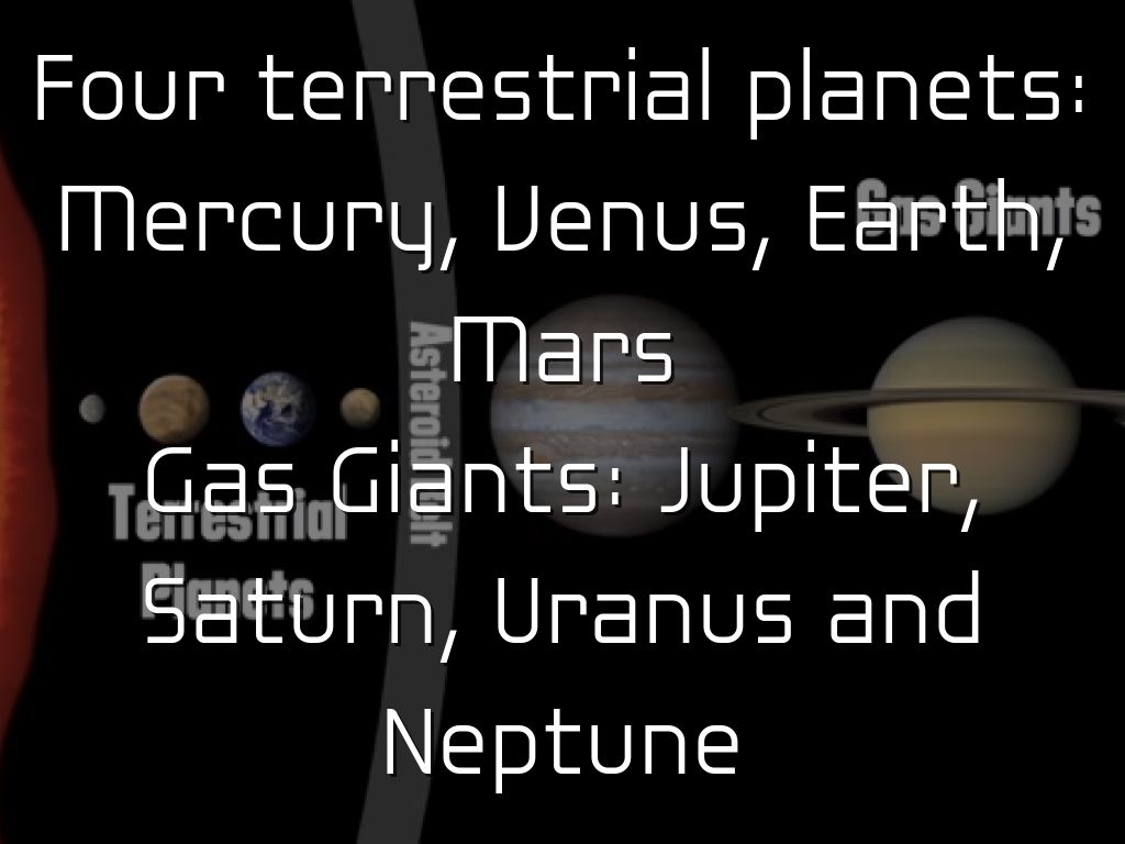 Four terrestrial planets: Mercury, Venus, Earth, Mars