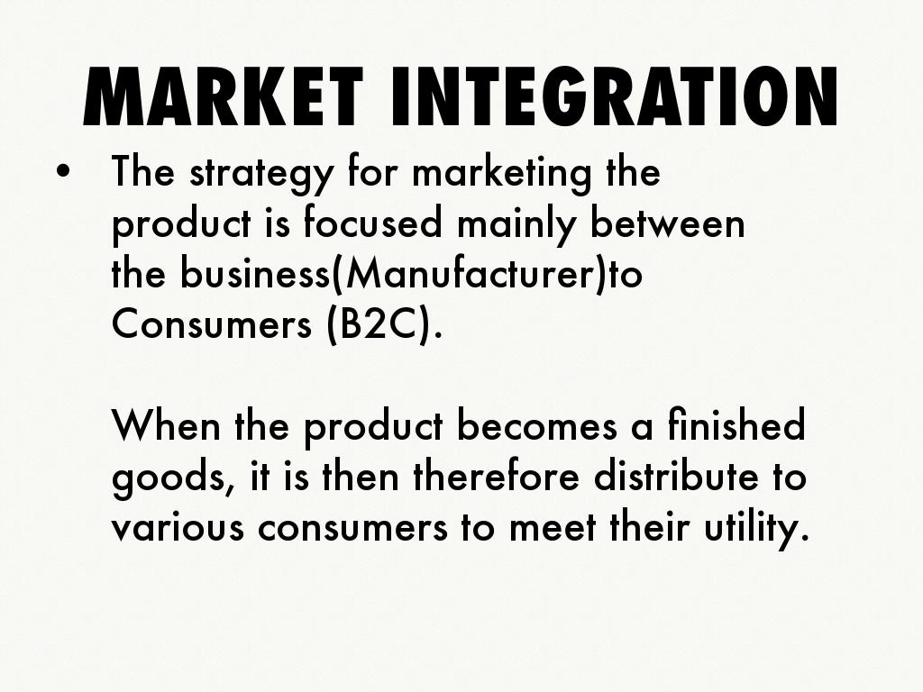 The strategy for marketing the product is focused mainly between the business(Manufacturer)to Consumers (B2C).