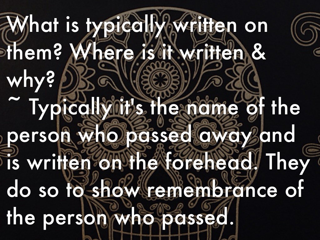 ~ Typically it's the name of the person who passed away and is written on the forehead. They do so to show remembrance of the person who passed.