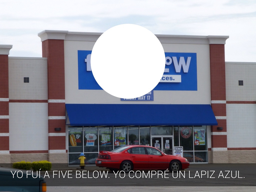 YO FUÍ A FIVE BELOW. YO COMPRÉ UN LAPIZ AZUL.