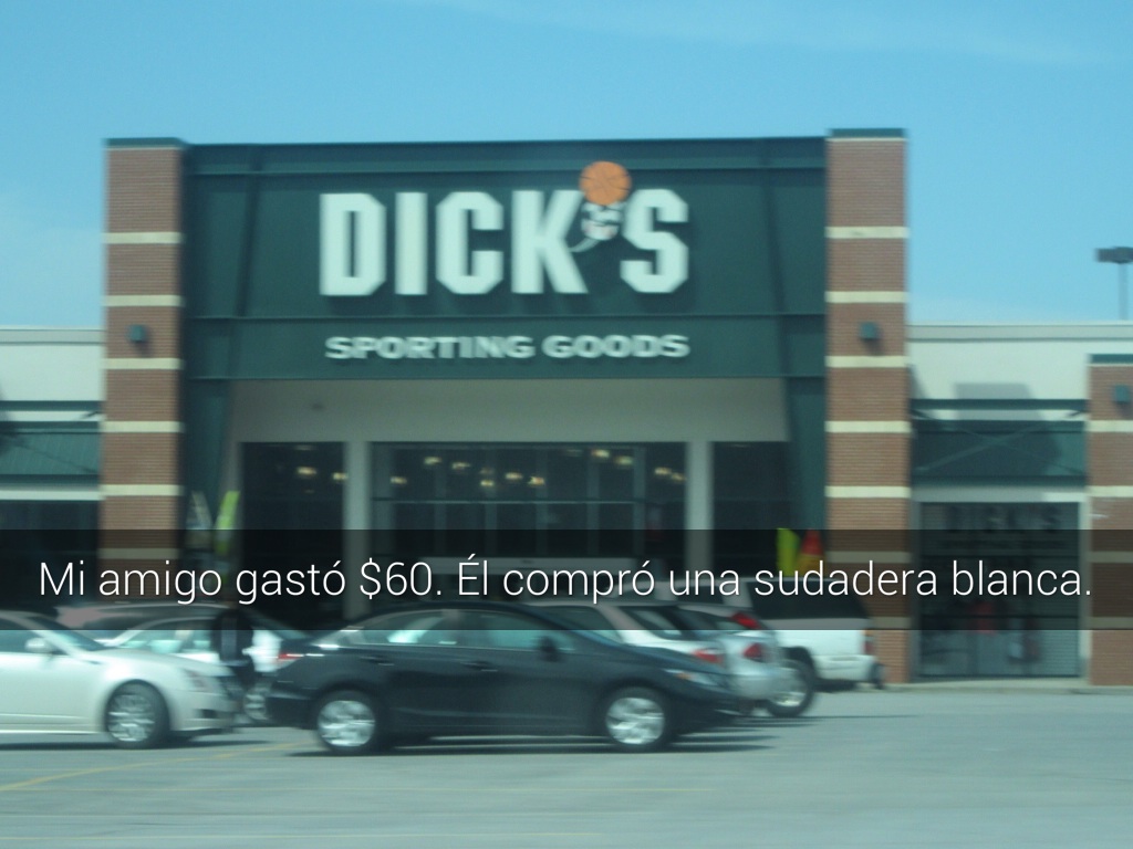 Mi amigo gastó $60. Él compró una sudadera blanca.