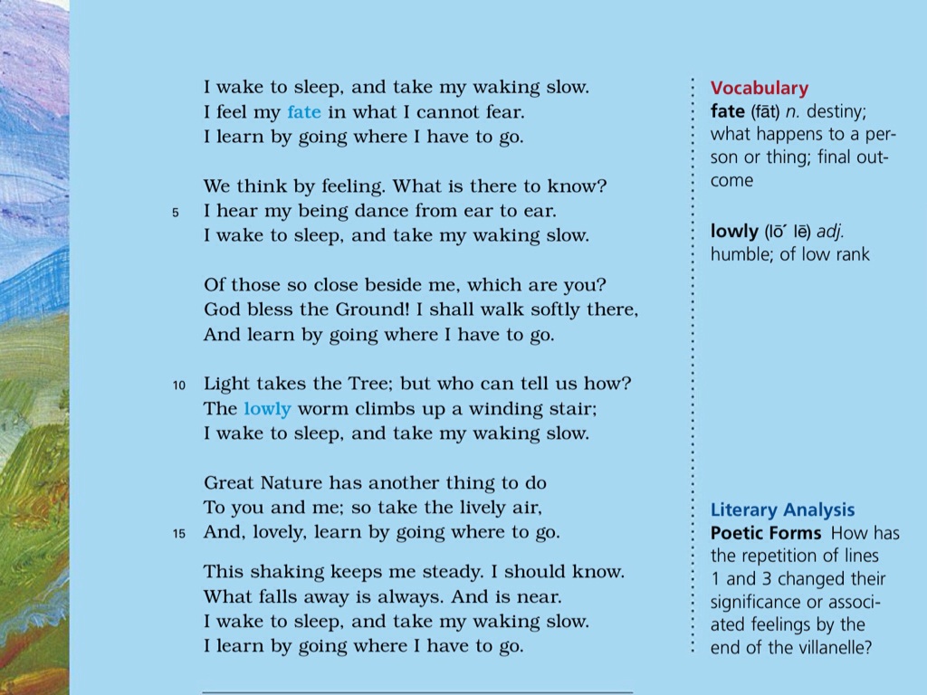 " I learn by going where I have to go" " I wake to sleep and take my waking slow"