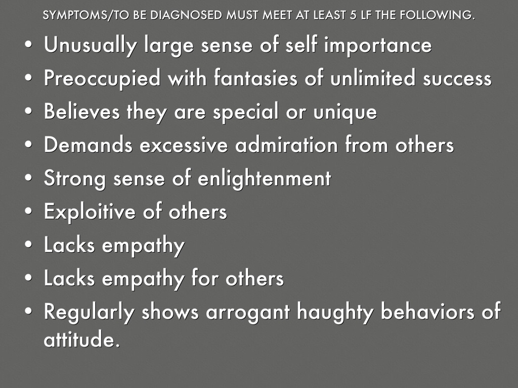 NPD (Narcissistic personality disorder) is a mental disorder in which someone has an inflated sense of self importance. They feel a deep need for admiration and lack the capability of feeling for others. But still, have an easily shattered ego due to the slightest criticism.