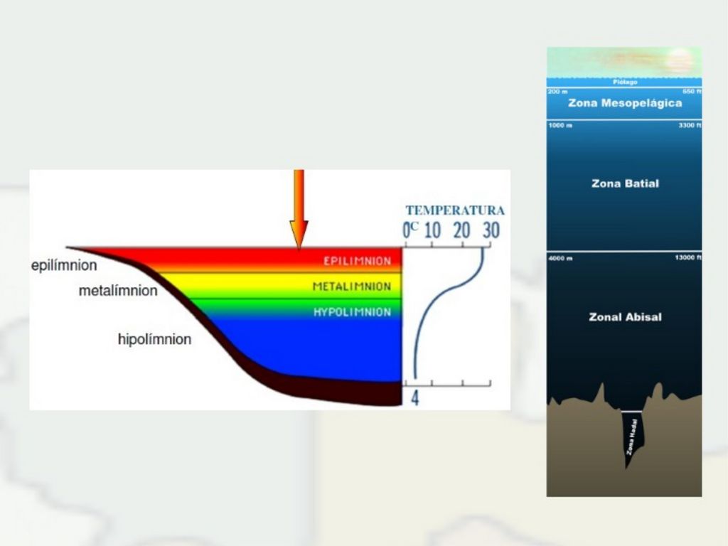 Zona continental o superficial, batían y abisal.