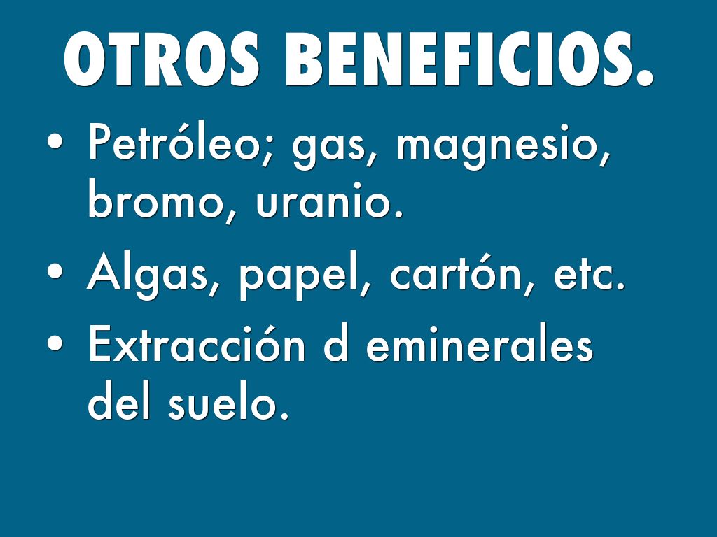 Petróleo; gas, magnesio, bromo, uranio.