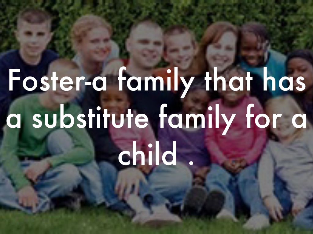 Foster-a family that has a substitute family for a child .