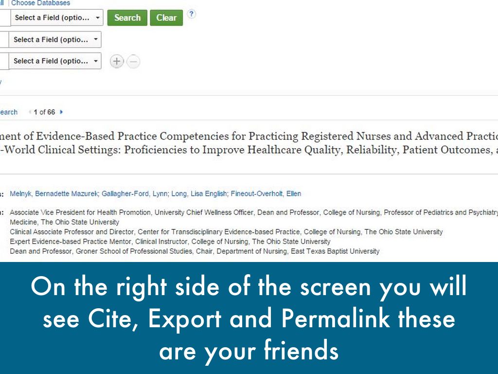 On the right side of the screen you will see Cite, Export and Permalink these are your friends