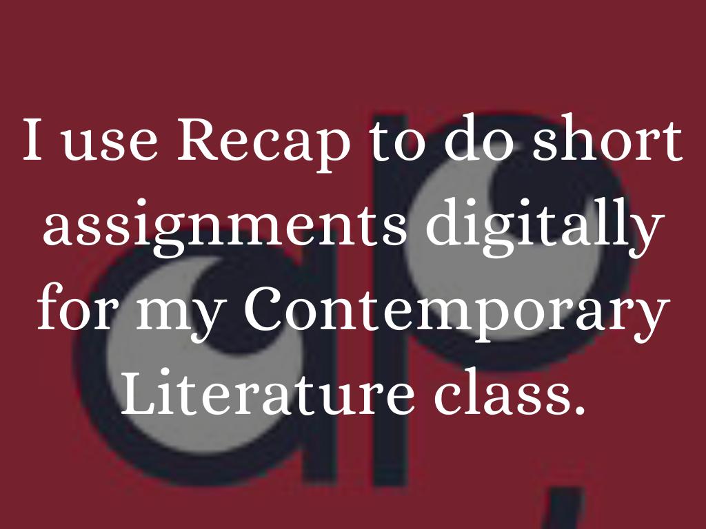 I use Recap to do short assignments digitally for my Contemporary Literature class.