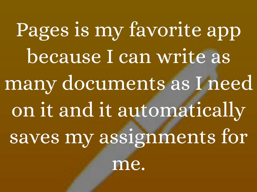 Pages is my favorite app because I can write as many documents as I need on it and it automatically saves my assignments for me.