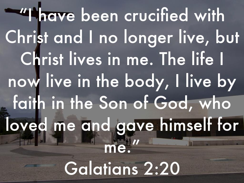 “I have been crucified with Christ and I no longer live, but Christ lives in me. The life I now live in the body, I live by faith in the Son of God, who loved me and gave himself for me.” Galatians 2:20