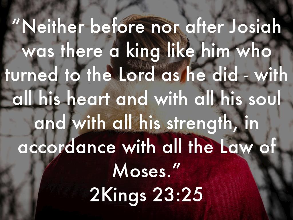 “Neither before nor after Josiah was there a king like him who turned to the Lord as he did - with all his heart and with all his soul and with all his strength, in accordance with all the Law of Moses.” 2Kings 23:25