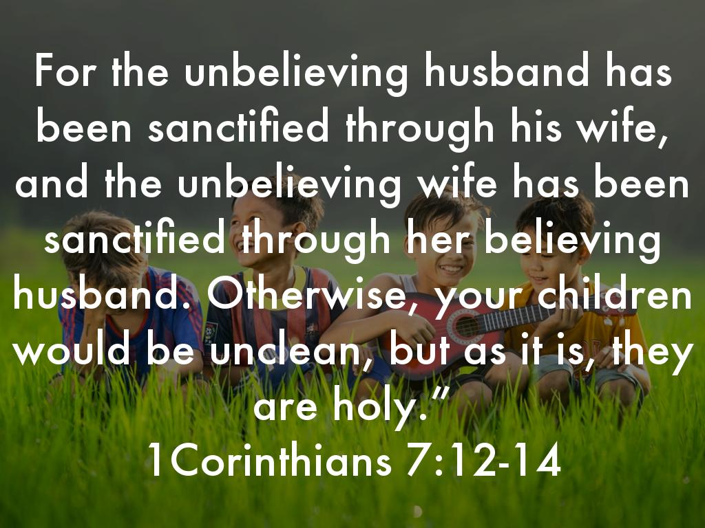For the unbelieving husband has been sanctified through his wife, and the unbelieving wife has been sanctified through her believing husband. Otherwise, your children would be unclean, but as it is, they are holy.” 1Corinthians 7:12-14
