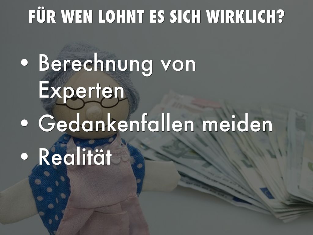 FÜR WEN LOHNT ES SICH WIRKLICH?