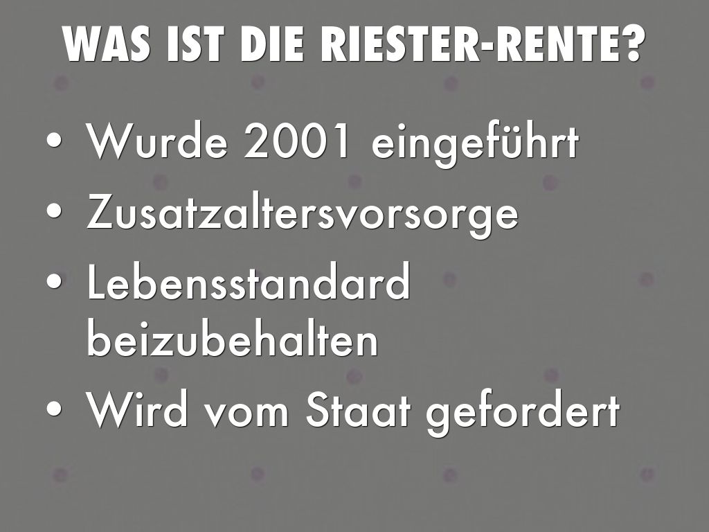 STAATLICH GEFÖRDERTE ALTERSVORSORGE