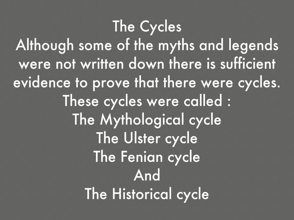 Although some of the myths and legends were not written down there is sufficient evidence to prove that there were cycles.